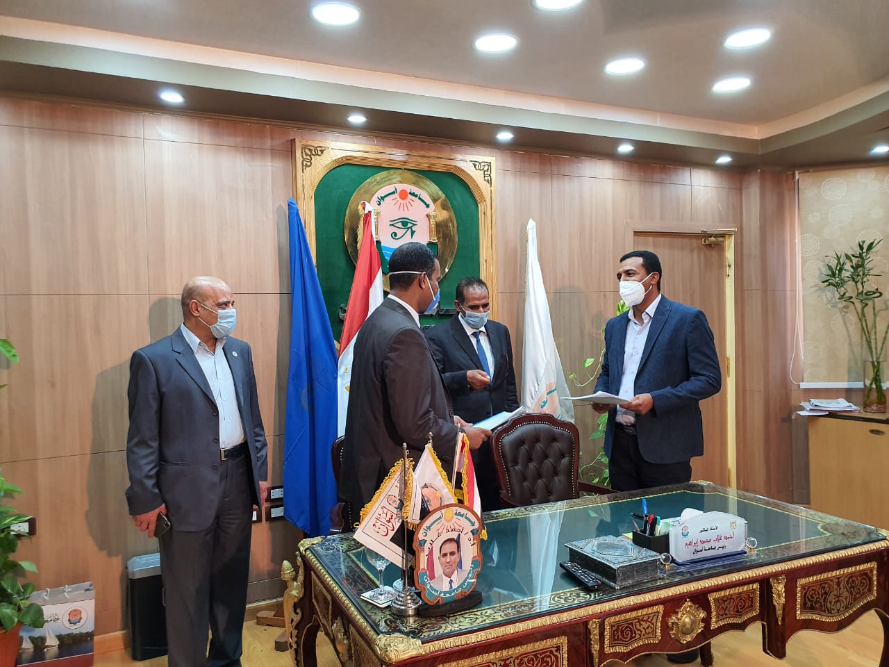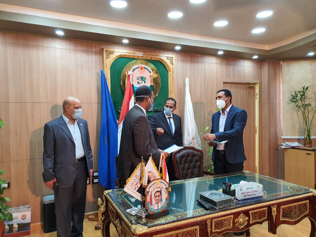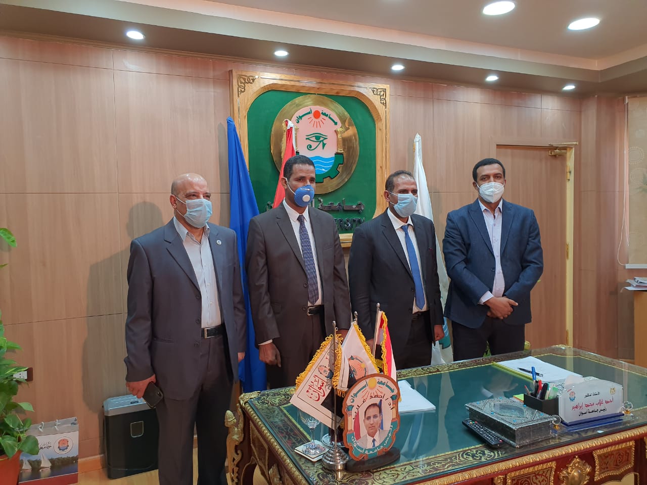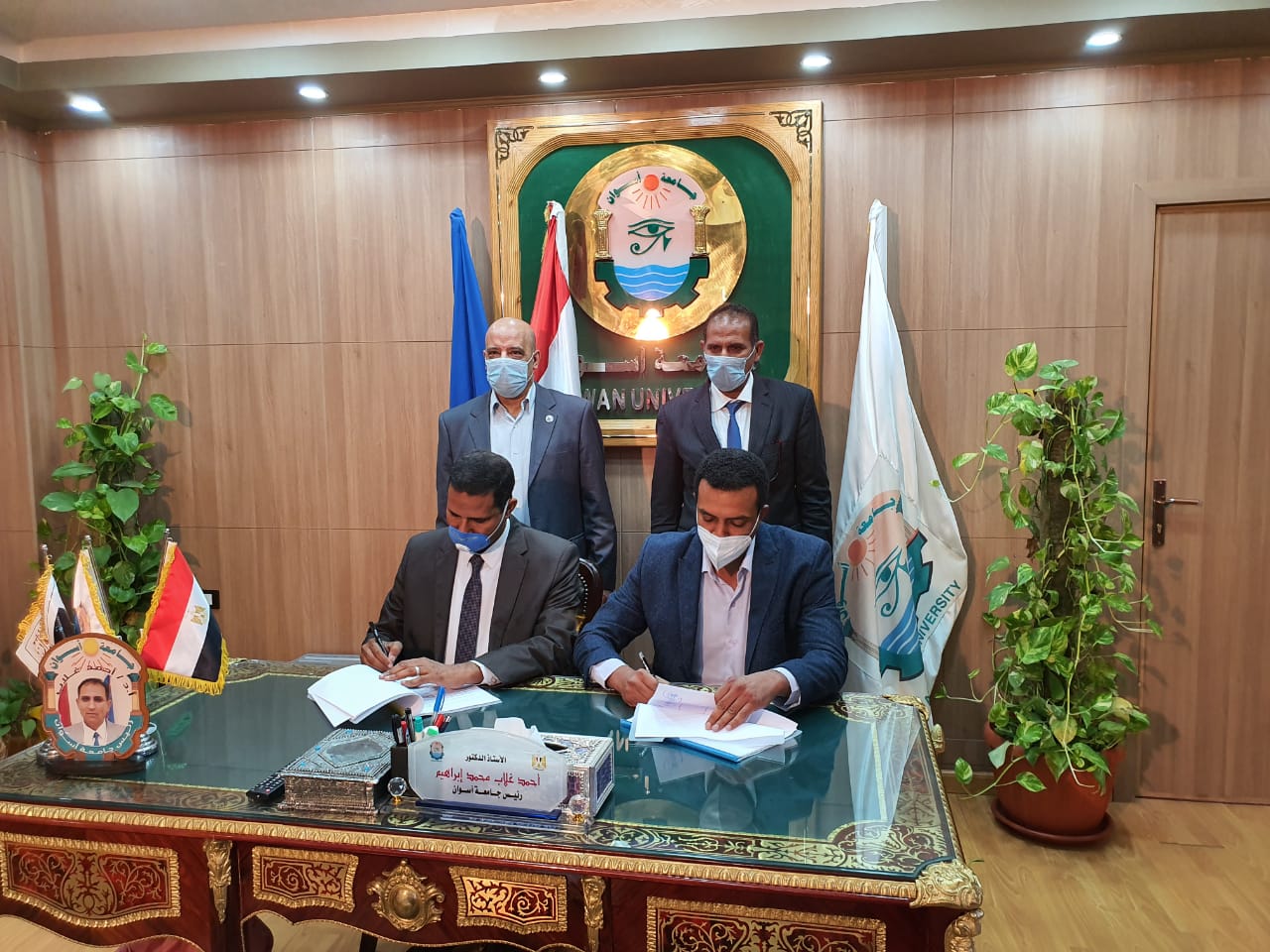وتم توقيع البروتوكول بحضور الدكتور/ أحمد غلاب محمد -رئيس جامعة أسوان ,والمهندس /محمد علي إبراهيم الشروني -وكيل وزارة الموارد المائية والري والدكتور/ أيمن عثمان -نائب رئيس الجامعة للدراسات العليا والبحوث والدكتور/ محمد زكريا المستشار الهندسي للجامعة ومدير المركز.